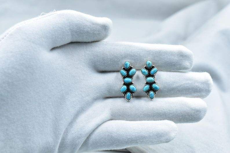 925 Sterling Silver Mojave Turquoise Stud Earrings Handmade Gemstone Jewelry