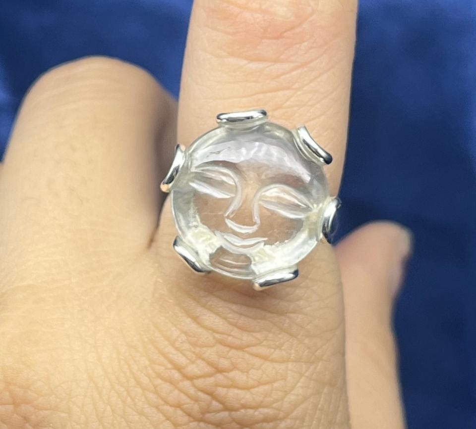 925 Sterling Silver Moon Face Ring with Crystal Gemstone Handmade Bezel Setting Wedding and Party Accessory