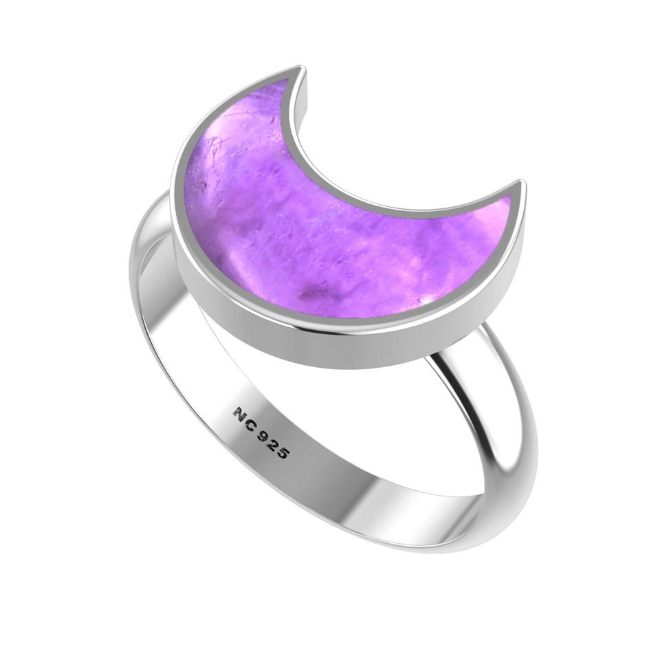 925 Sterling Silver Moon Shape Amethyst Stackable Ring Bezel Setting Fancy Trendy Engagement Anniversary Wedding Party Gift