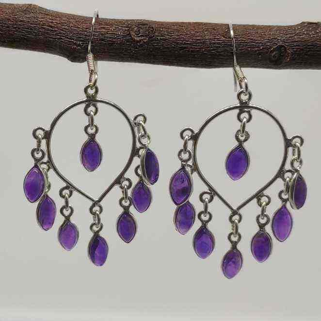 925 Sterling Silver Multi-Stone Amethyst Earrings Cluster Hoops Earrings For Women At Factory Price