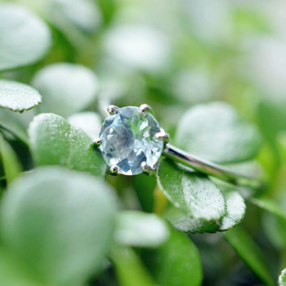 925 Sterling Silver Natural 5mm Round Blue Aquamarine Jewelry Simplistic Aquamarine Ring