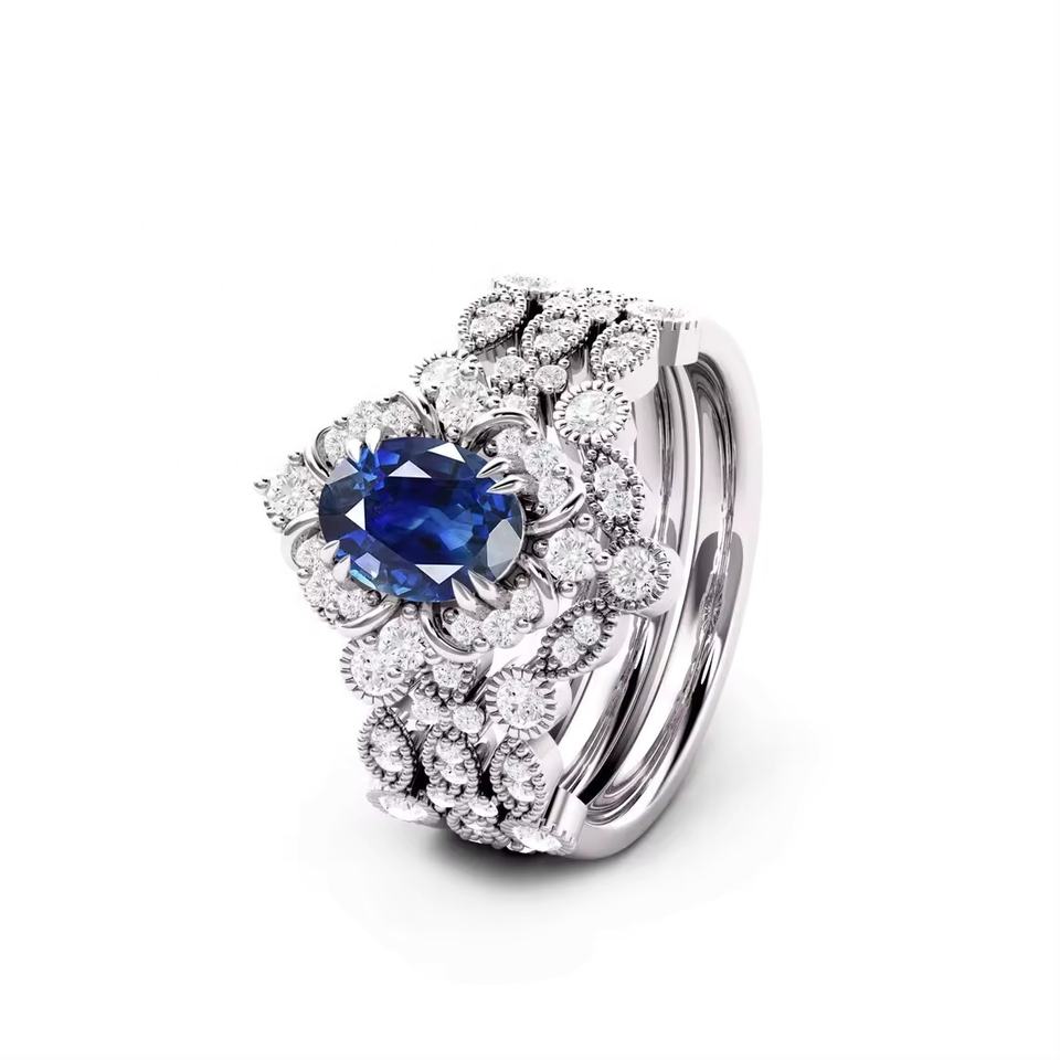 925 Sterling Silver Natural Blue Sapphire Gemstone Bridal Promise Ring Set From Indian Manufacturer at Wholesale Factory Price