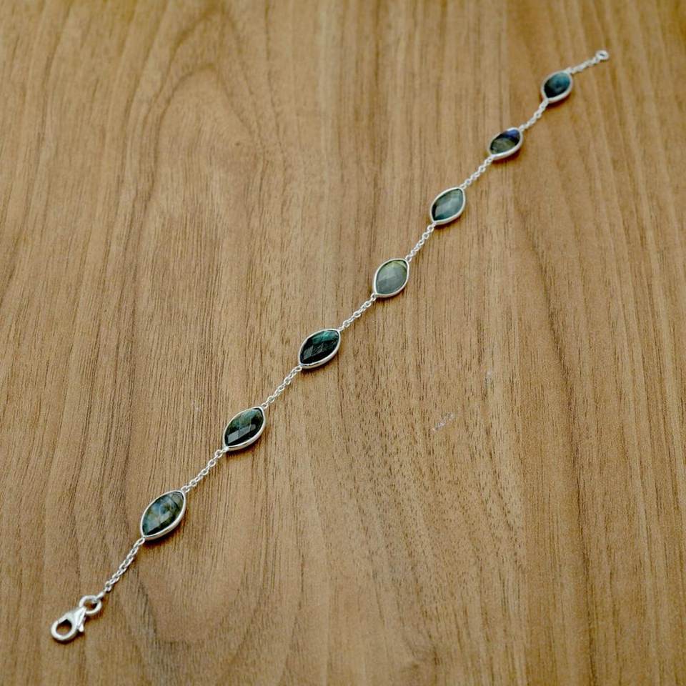 925 Sterling Silver Natural Fire Labradorite Bracelet with Genuine Gemstone Anniversary Gift Gold Shell BR0079-GS