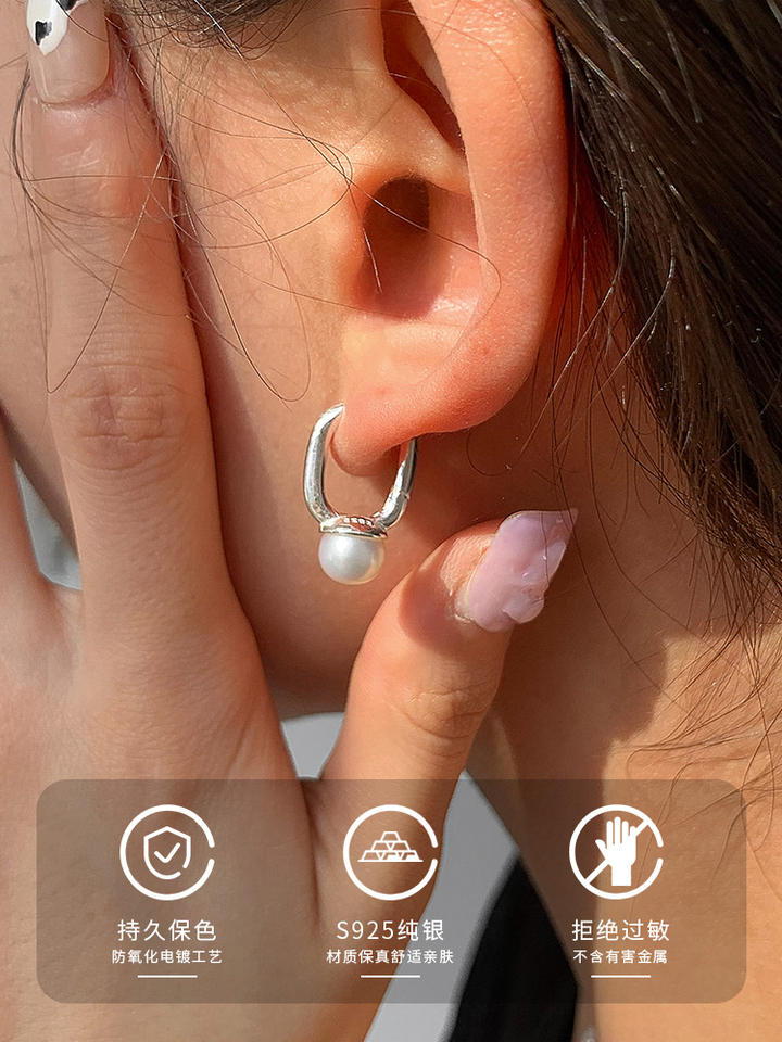 925 Sterling Silver Natural Freshwater Pearl Earring Set Classic Korean Minimalist Niche Design Hypoallergenic Studs Clips Party