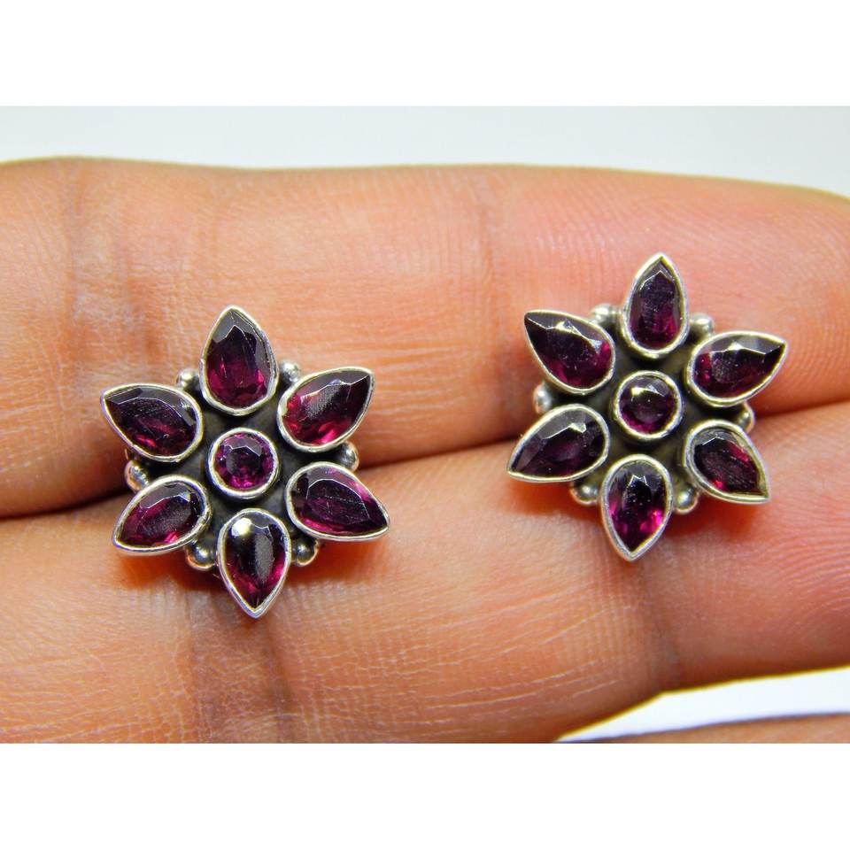 925 Sterling Silver Natural Garnet Earring Stud Rose Gold & Diamond Gift for Girls & Women E0650-GS Jewelry