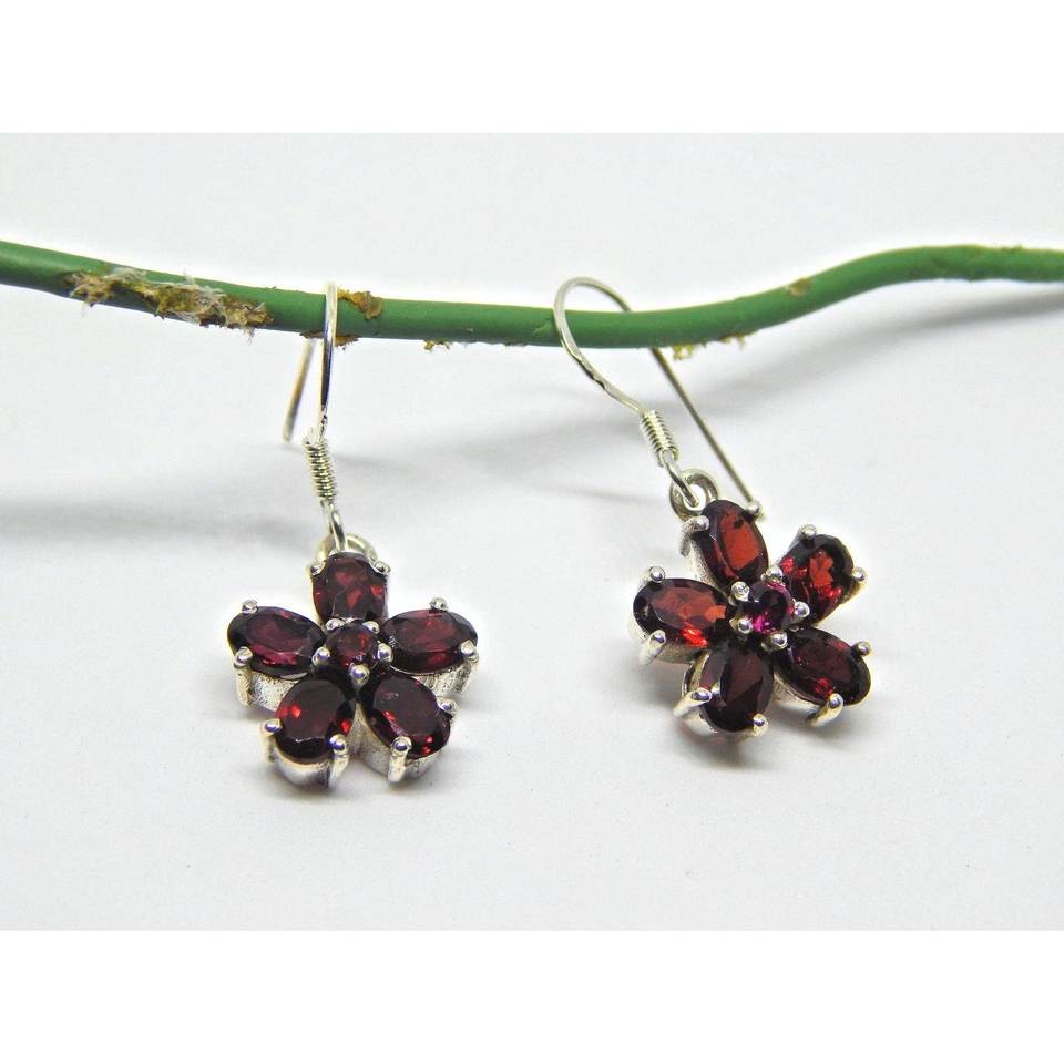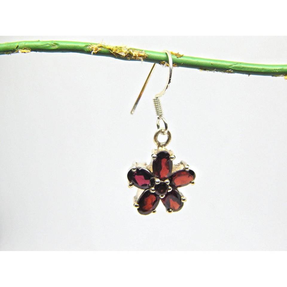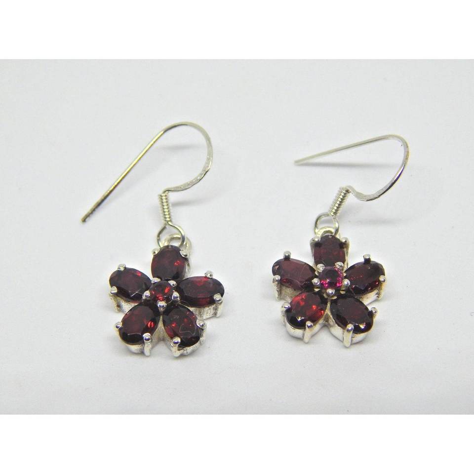 925 Sterling Silver Natural Garnet Gemstone Dangle Earrings Simple Flower Design Fashionable Style