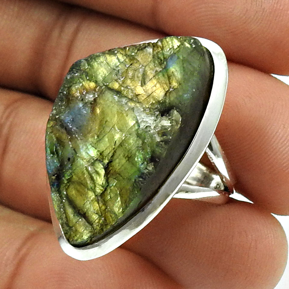 925 Sterling Silver Natural Labradorite Rough Gemstone Unique Design Amazing Ring Handmade Bohemian Jewelry Direct Factory Price
