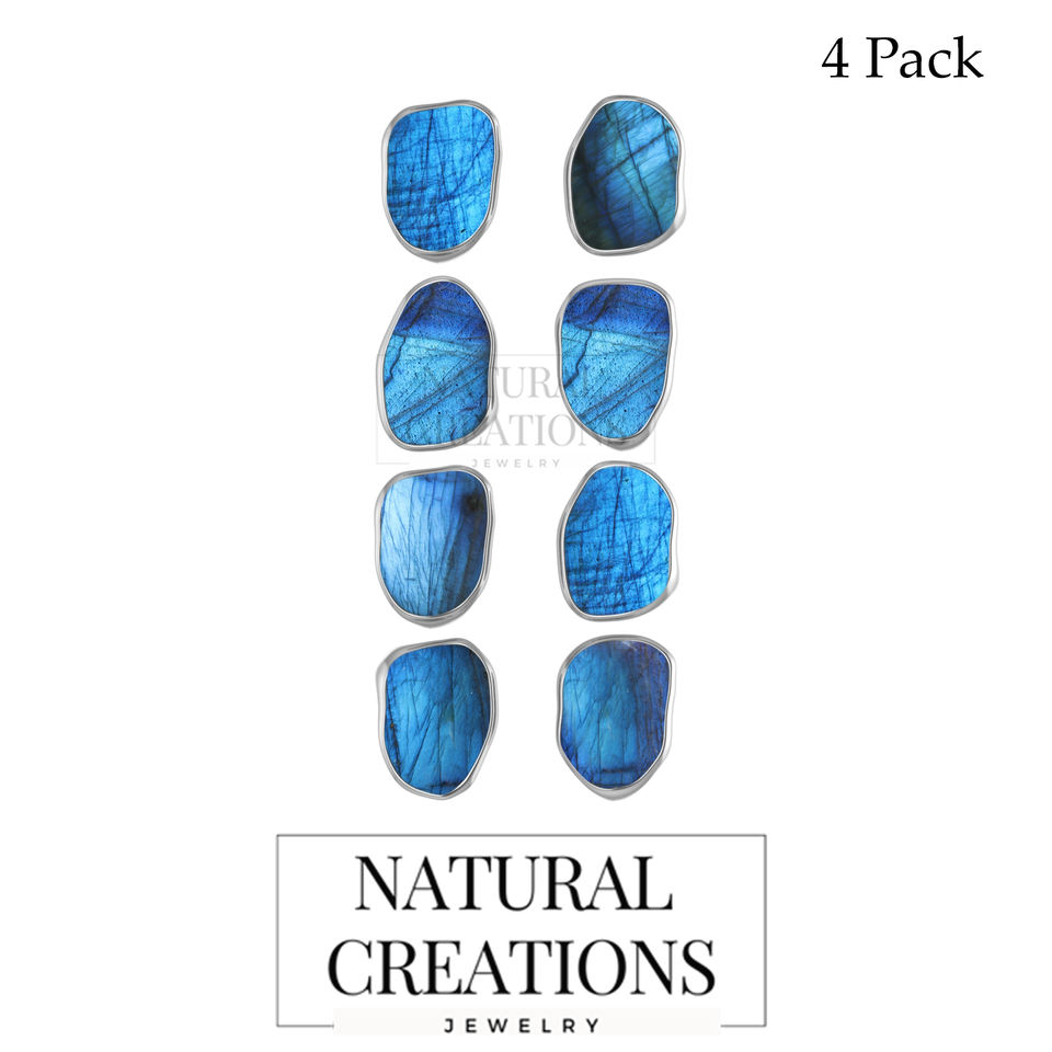 925 Sterling Silver Natural Labradorite Rough Butterfly Lock Stud Earrings Classic Style Bezel Setting Pack of 4 Pairs