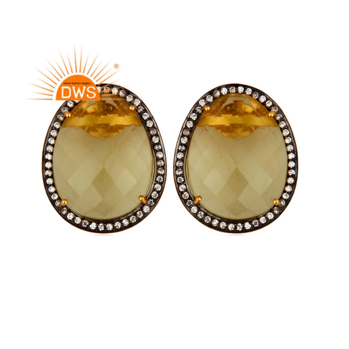 925 Sterling Silver Natural Lemon Topaz And Cz Gemstone Stud Earring For Women Jewelry Manufacturer