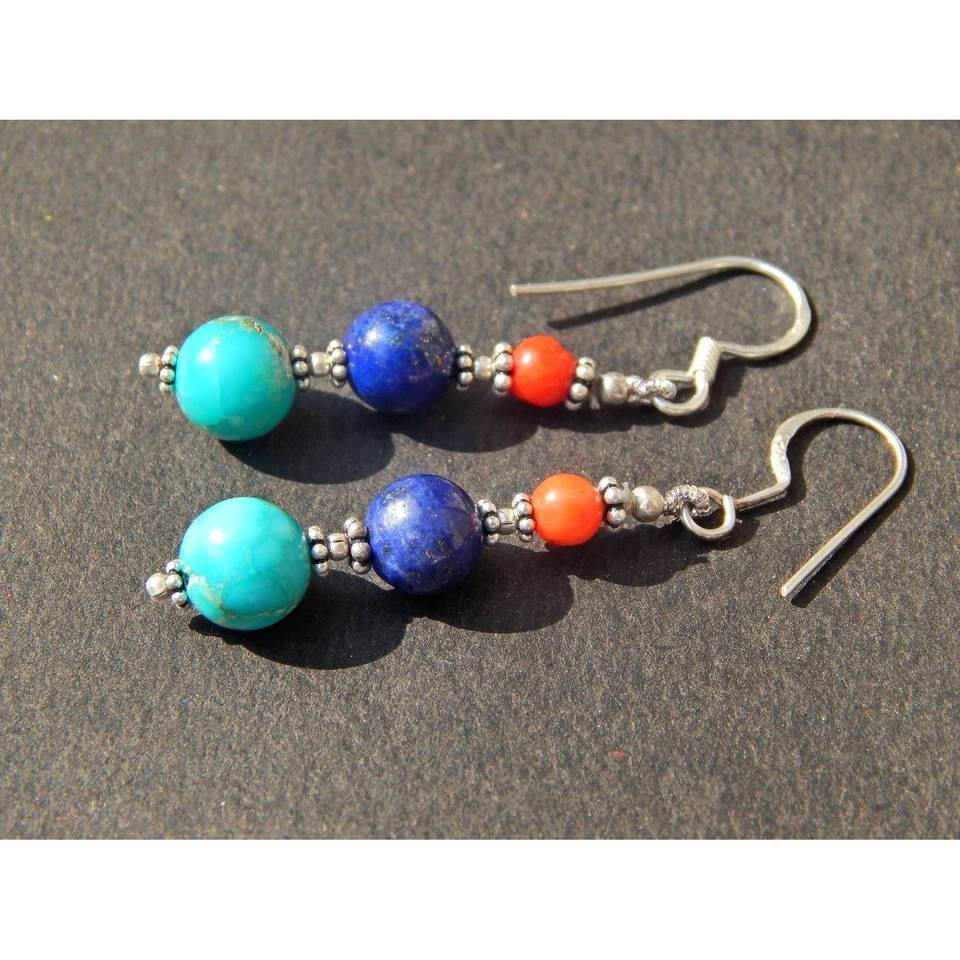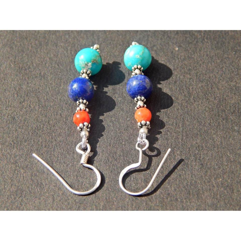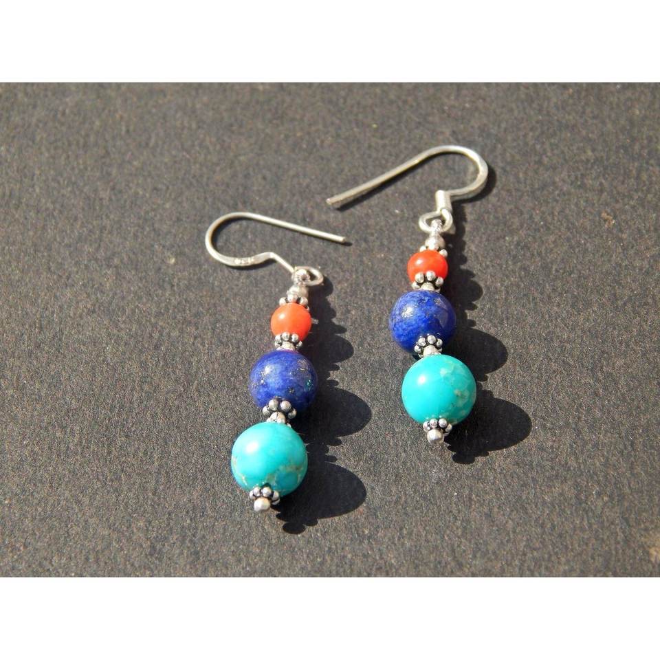 925 Sterling Silver Natural Multi Gemstone Earrings Crystal Coral Lapis Lazuli Turquoise Beaded Earrings Gift