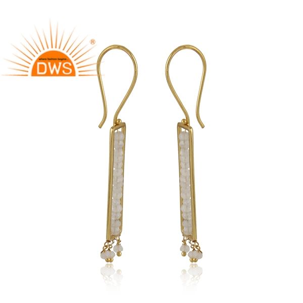 925 Sterling Silver Natural Rainbow Moon Stone gemstone dangle earring for women jewelry manufacturer