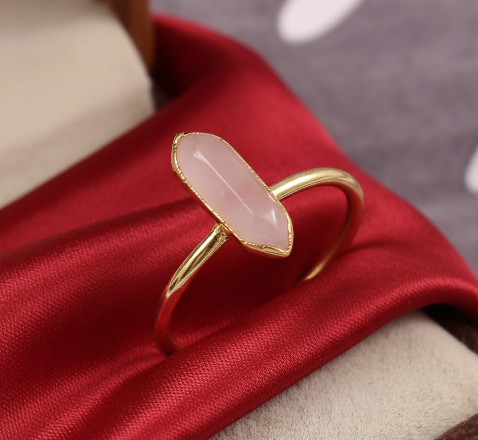 Handmade 925 Silver Fine Ring Classic Boho Style Eternity Pencil-Shaped Rose Quartz Gemstone Bezel Setting for Party