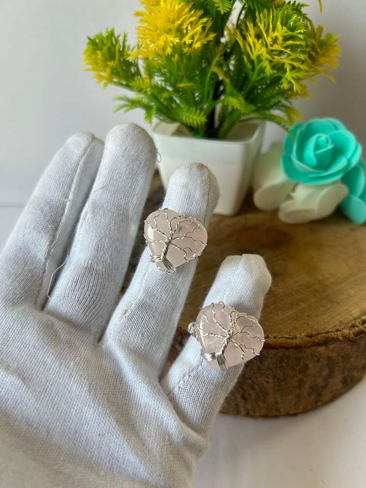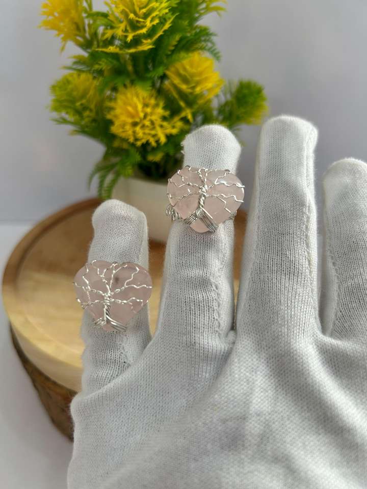 Wholesale Natural Rose Quartz Heart Ring Tree Life Wire Wrapped Gemstone Jewelry Angel Style with Pillar Pattern New Arrival!