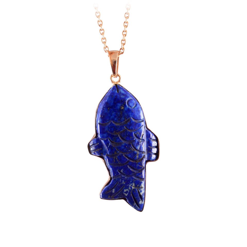 925 Sterling Silver Natural Stone Pendant Fish Carved Pendant with Lapis Lazuli Gold Plated for Women's Necklace Fine Charm