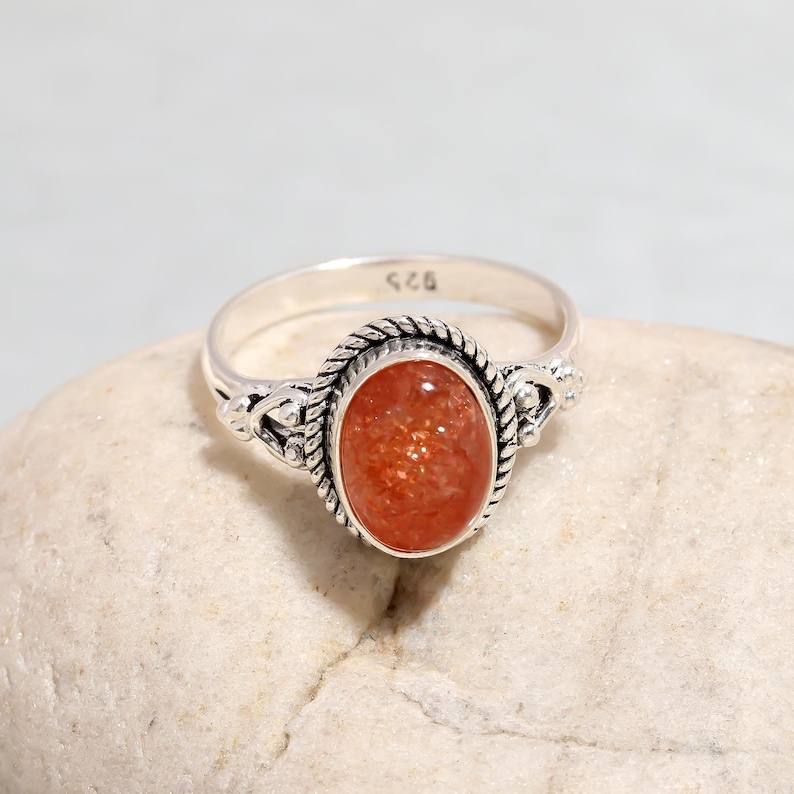 925 Sterling Silver Natural Sunstone Gemstone Ring Handmade Orange Stone Giftable Small Promise Ring For Women