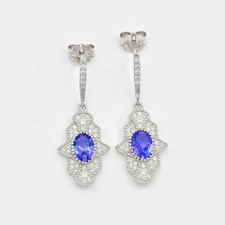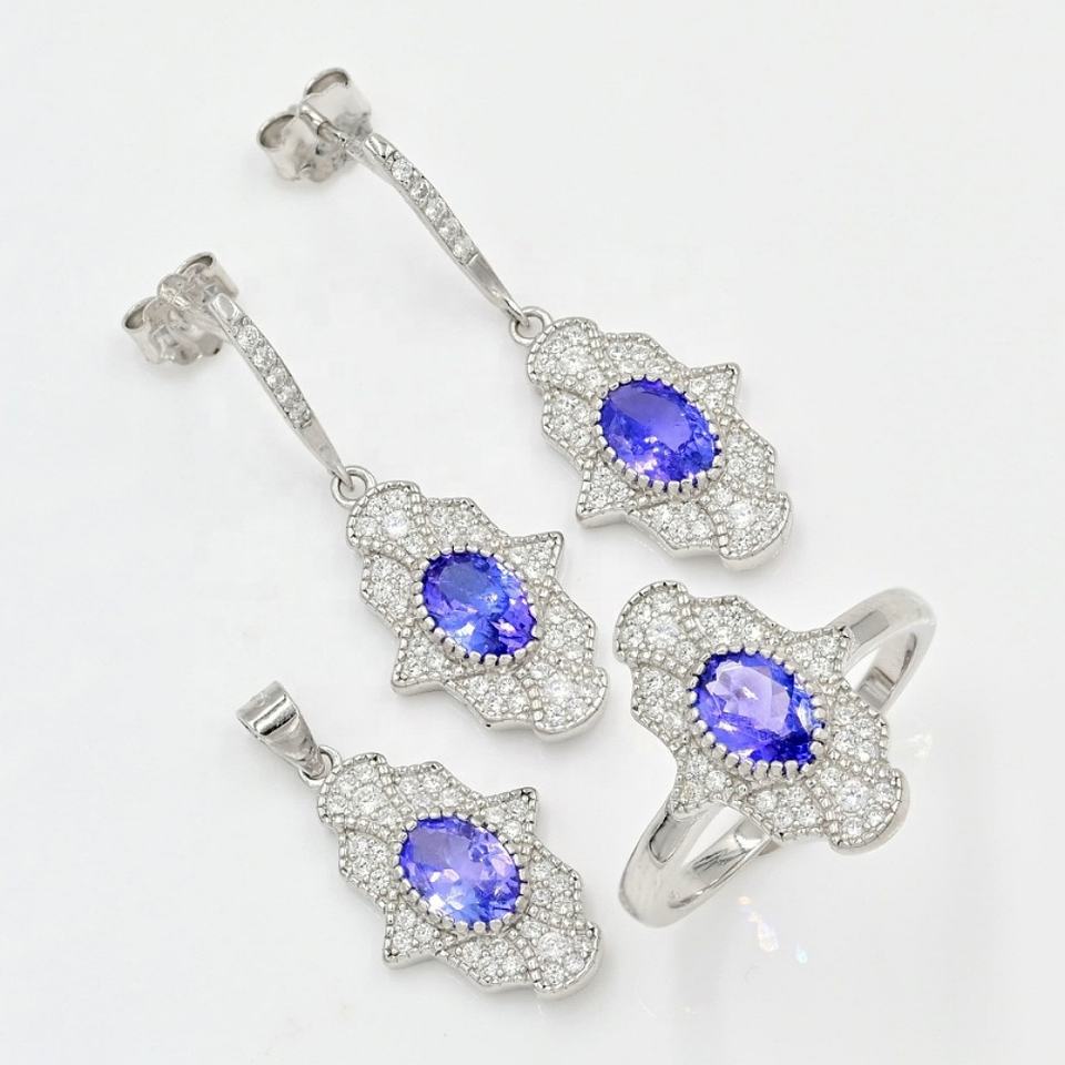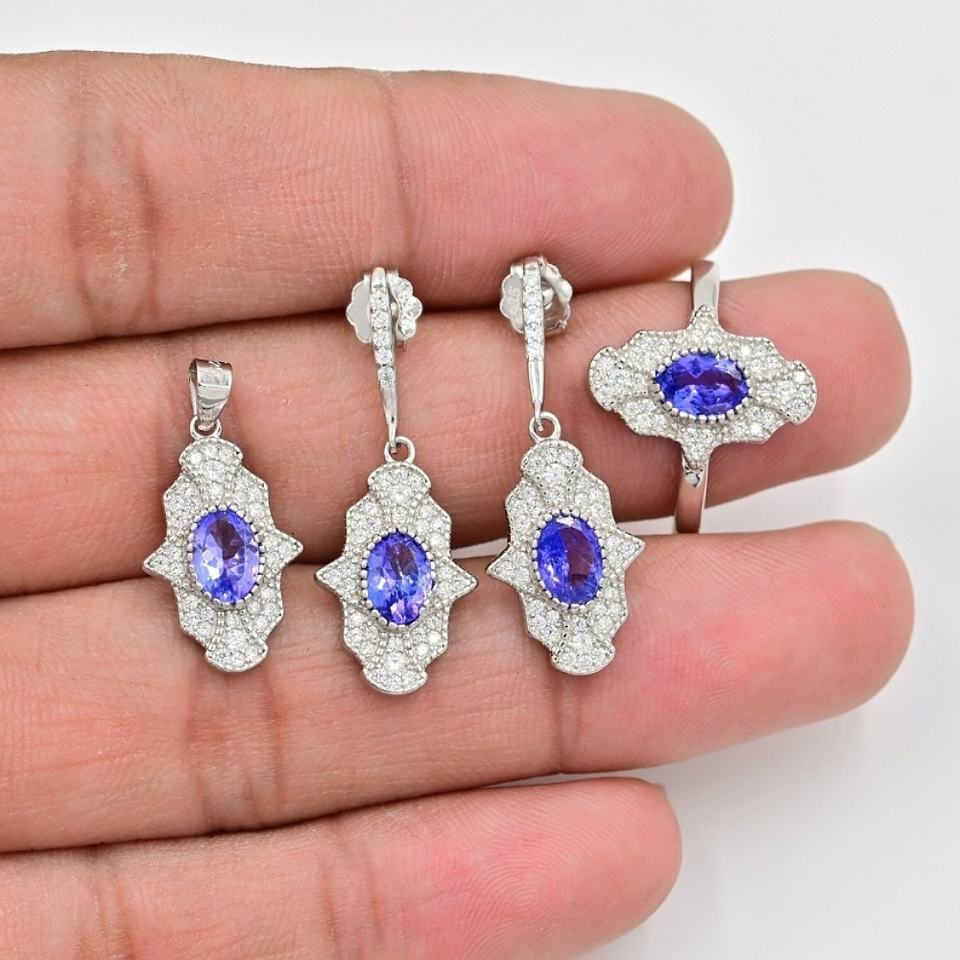 925 Sterling Silver Natural Tanzanite CZ 7 X 5 mm Oval Cut Gemstone Jewelry Set Women's Engagement Wedding Party Gift Certified