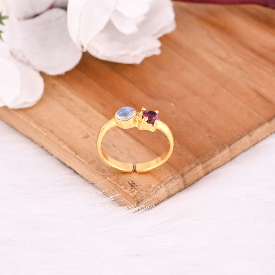 925 Sterling Silver Natural Tourmaline Moonstone Yellow Gold Plated Handmade Stackable Ring Christmas Gift Jewelry Women's Ring