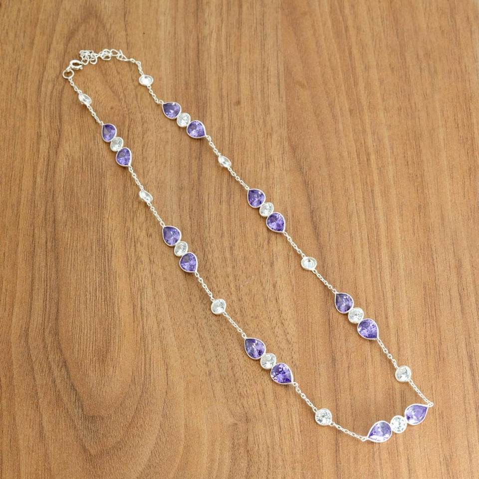 925 Sterling Silver Necklace with Natural Amethyst & CZ Purple Choker Gemstone Jewelry Fashionable Set for Her
