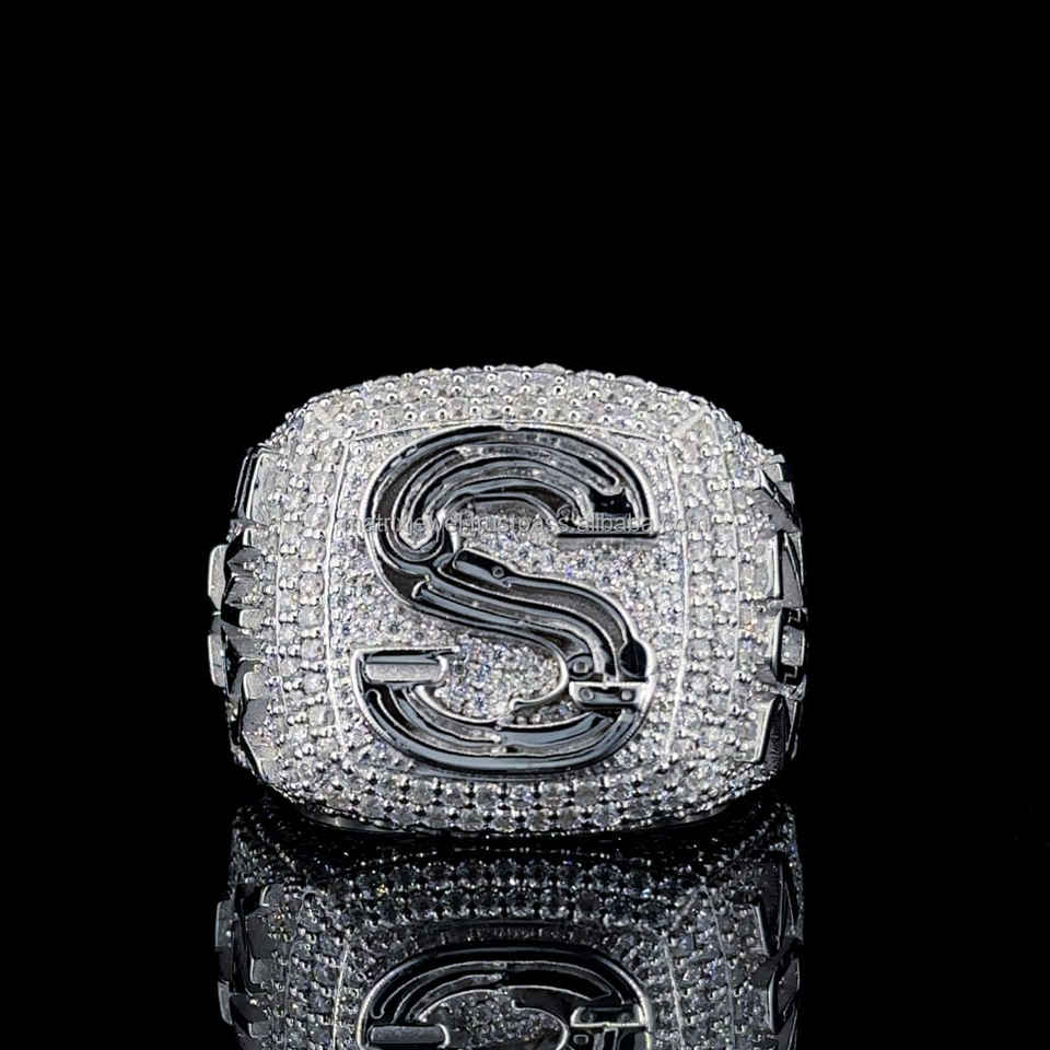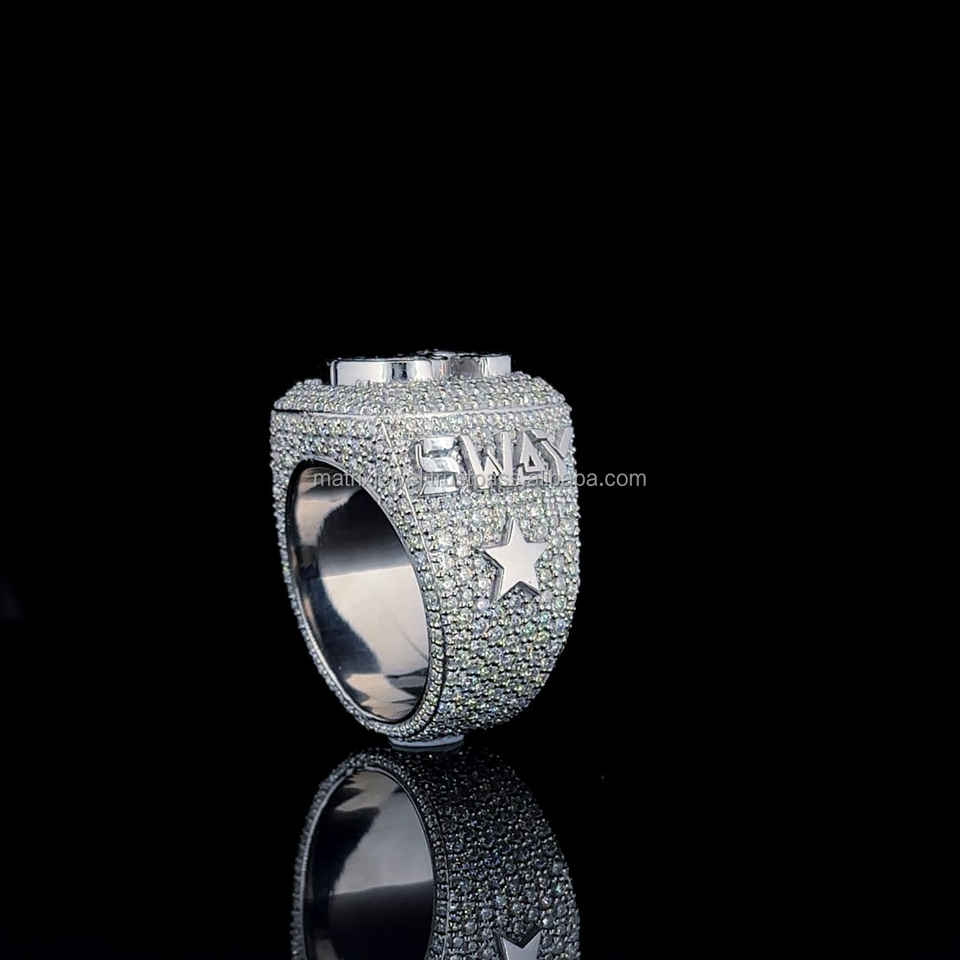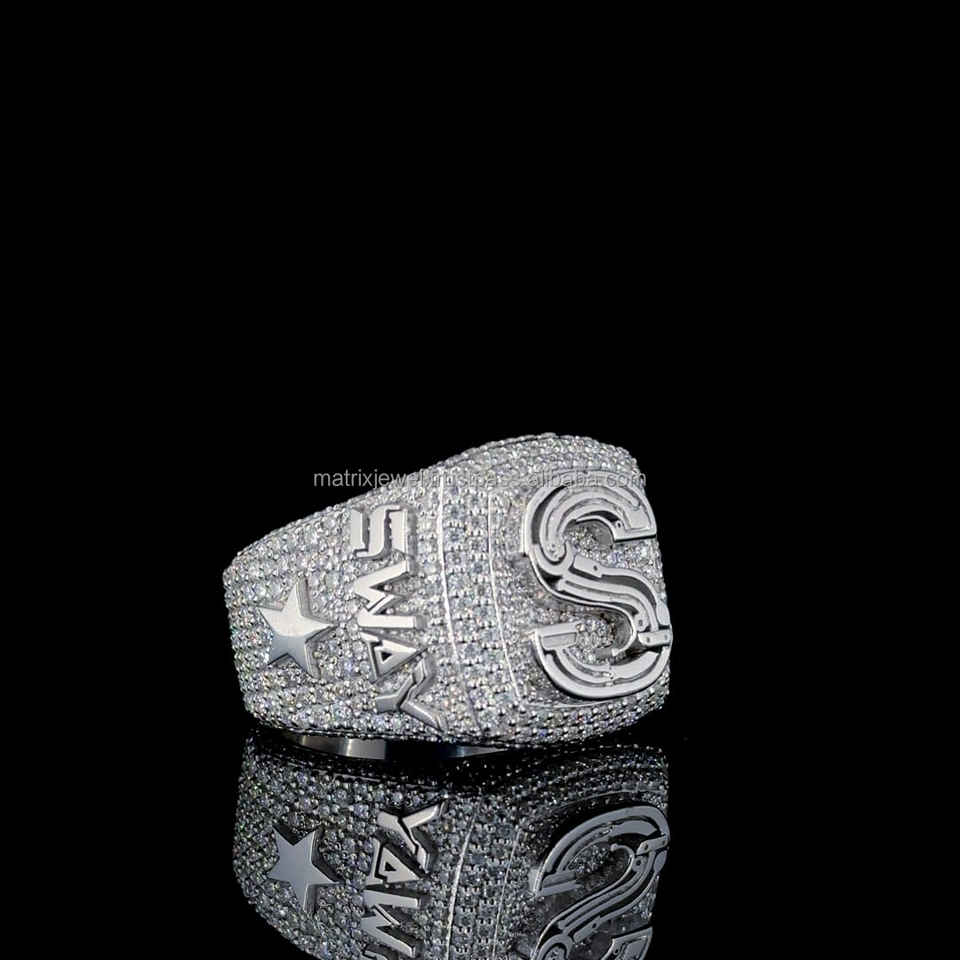 925 Sterling Silver New Design Logo Custom Rapper Letters Iced Out Bling VVS Mens Moissanite Diamond Hip Hop Men Champion Ring