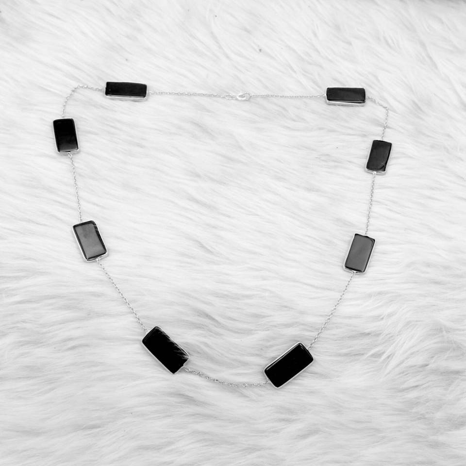 925 Sterling Silver Onyx Necklace Natural Black Onyx Gemstone Handmade Trendy Jewelry for Her Great Gift Idea