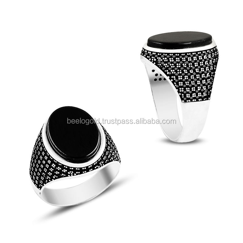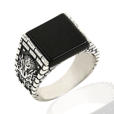 925 Sterling Silver Onyx Ottoman Tugra Men Ring Hot Selling Antique Pattern Silver Color Men Ring Jewelry Ottoman Empire
