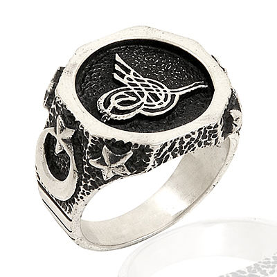 925 Sterling Silver Onyx Ottoman Tugra Men Ring Hot Selling Antique Pattern Silver Color Men Ring Jewelry Ottoman Empire