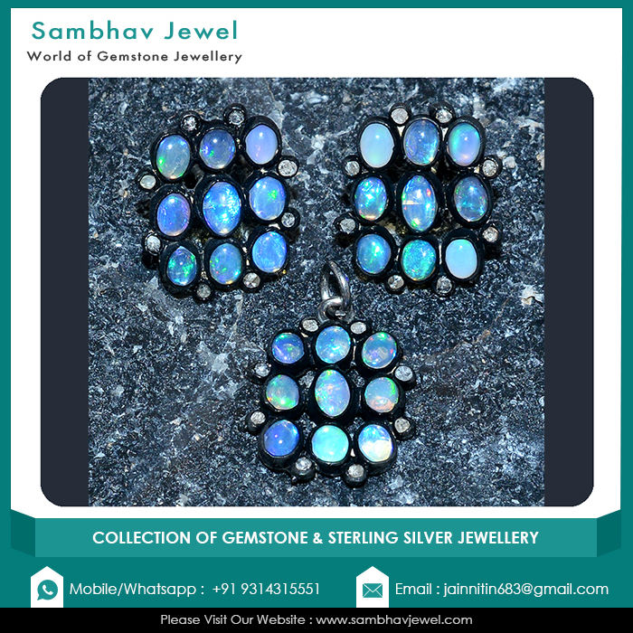 Classic Women's 925 Sterling Silver Natural Opal Gemstone Earring Pendant Set Fashion Accessory Gold Pearl Wedding Diamond