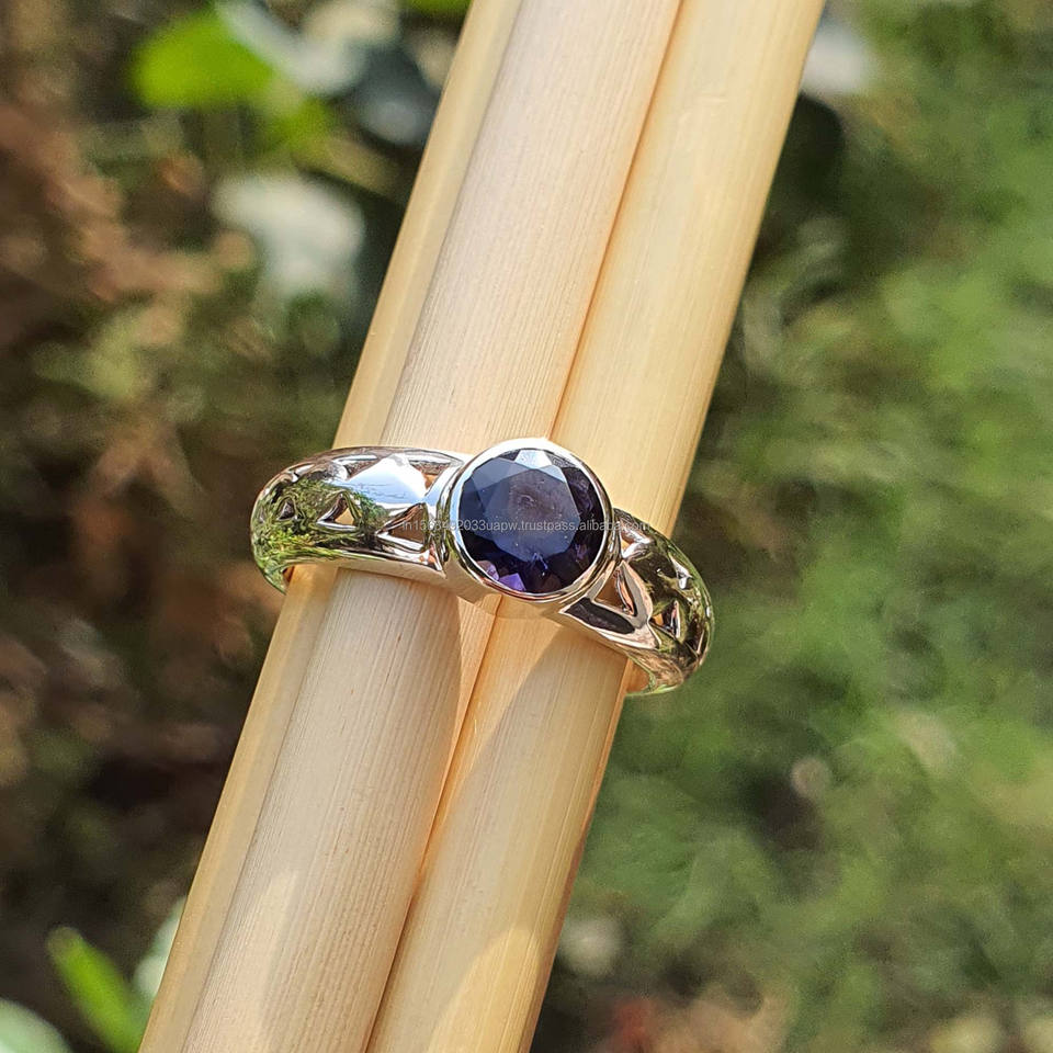 925 Sterling Silver Original Iolite Crystal Gemstone Engagement Rings for Women Unique September Birthstone Designer Rings
