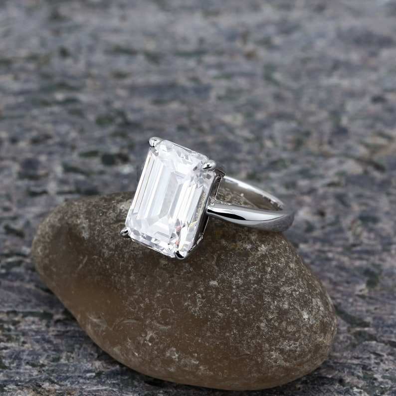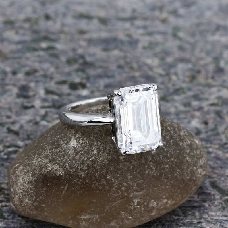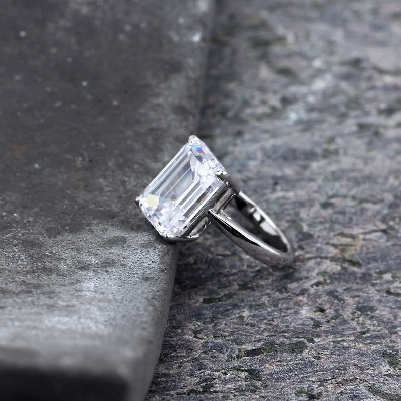925 Sterling Silver Original Moissanite Gemstone Handmade Designer Fine Ring Customized Silver Rhodium Plated Weddings Parties