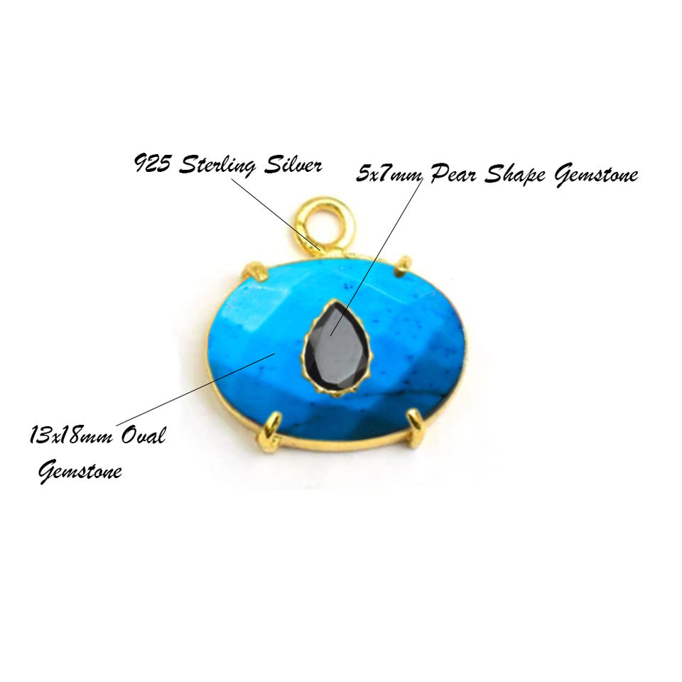 925 Sterling Silver Oval Quartz Peridot Inlay Pear Black Onyx Gemstone Bezel Prong Setting Charm Pendant Wholesale Jewelry