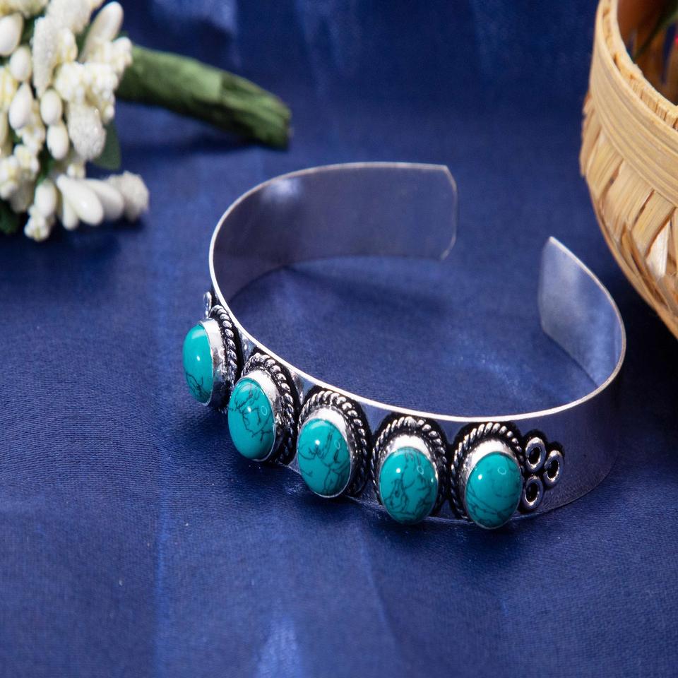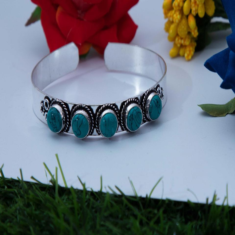 925 Sterling Silver Oxidized Turquoise Cuff Bracelet Stylish Handmade Bezel Setting Anniversary Gift for Weddings & Parties