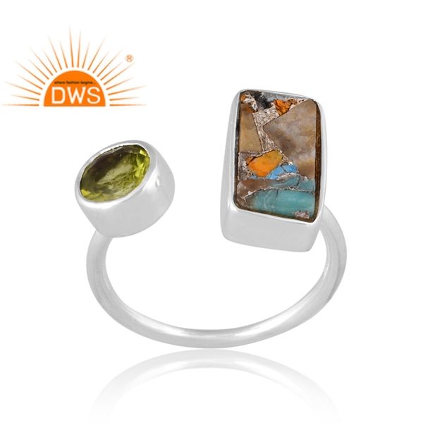 925 Sterling Silver Oyster Copper Turquoise & Peridot Gemstone Ring For All Occasions For Women Gift For Her