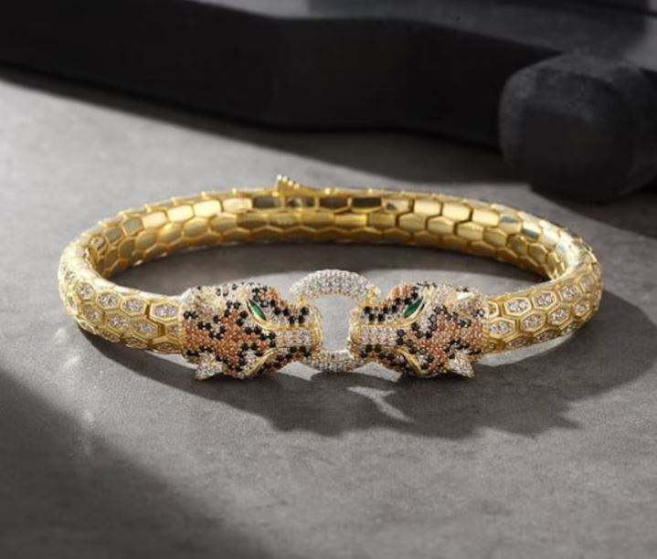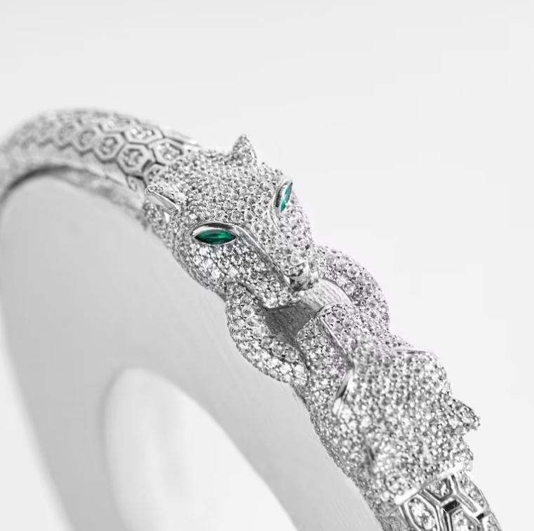 925 Sterling Silver Panther Head Bracelet for Men Luxury Cuff with Emerald Eyes CZ Pave Fine Pendants & Charms Anniversary Gift