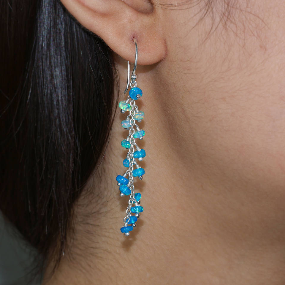 925 Sterling Silver Paraiba Opal Beaded Long Cluster Dangle Earrings Handmade Jewelry Gift for Women's Weddings, Birthday