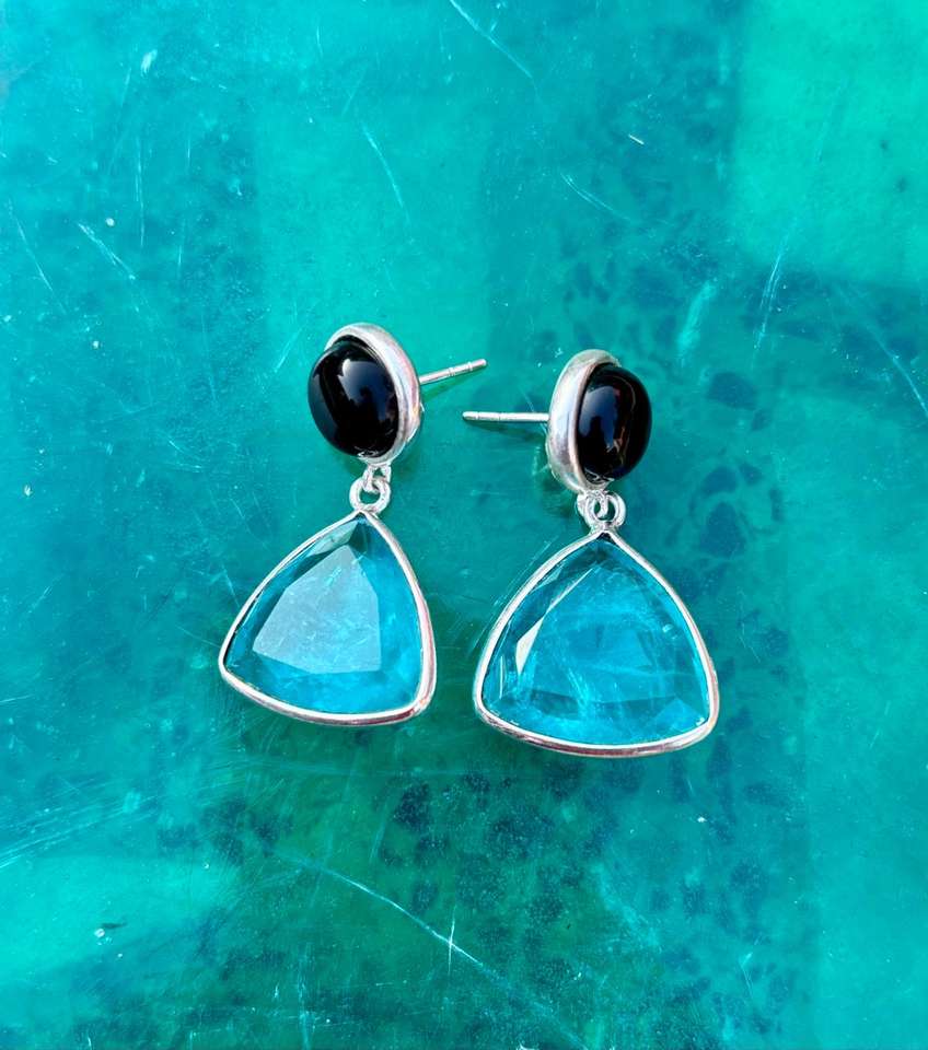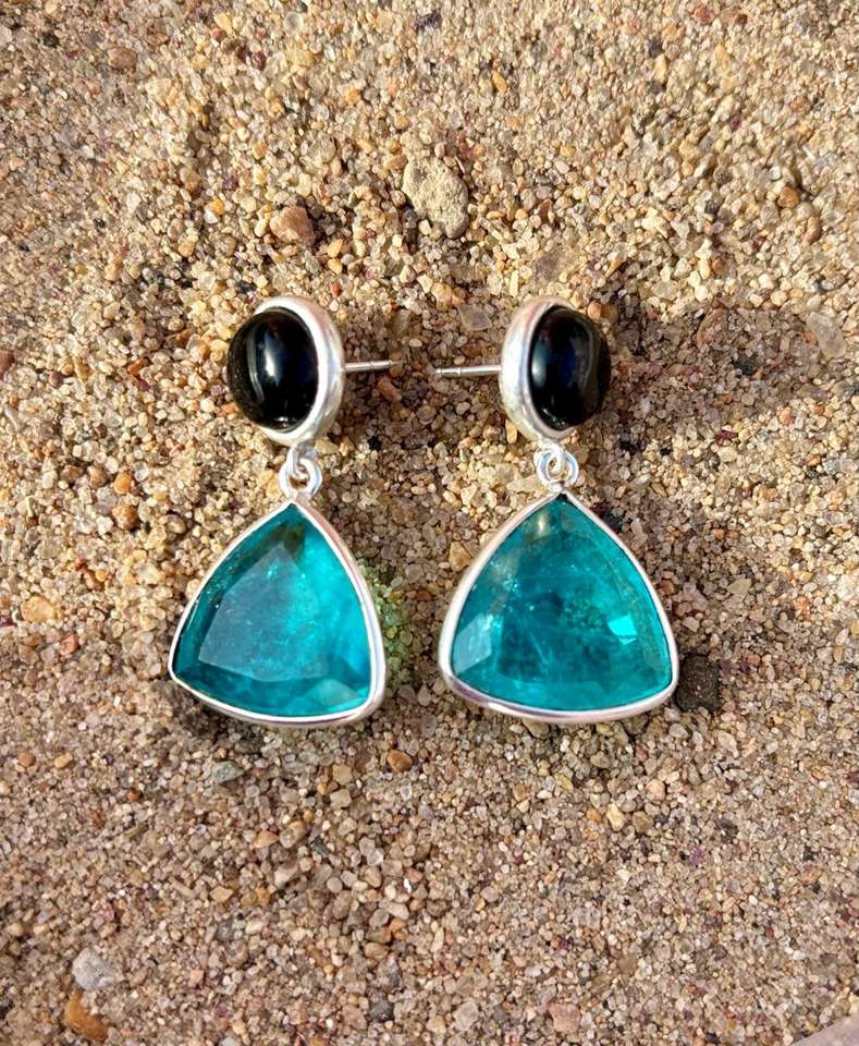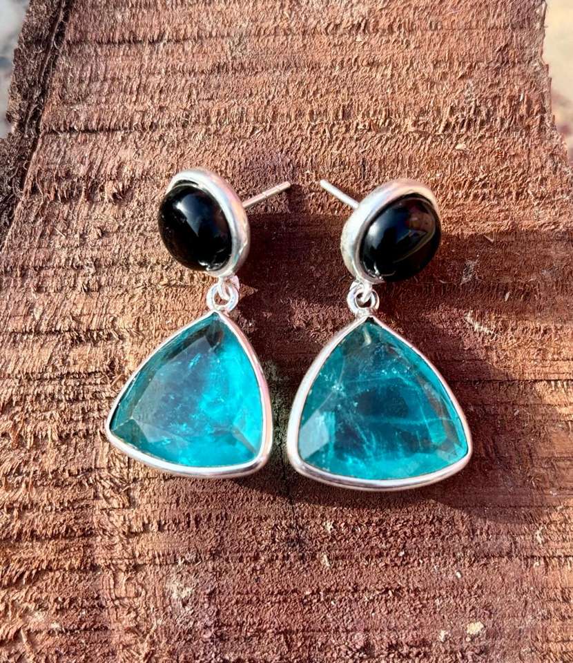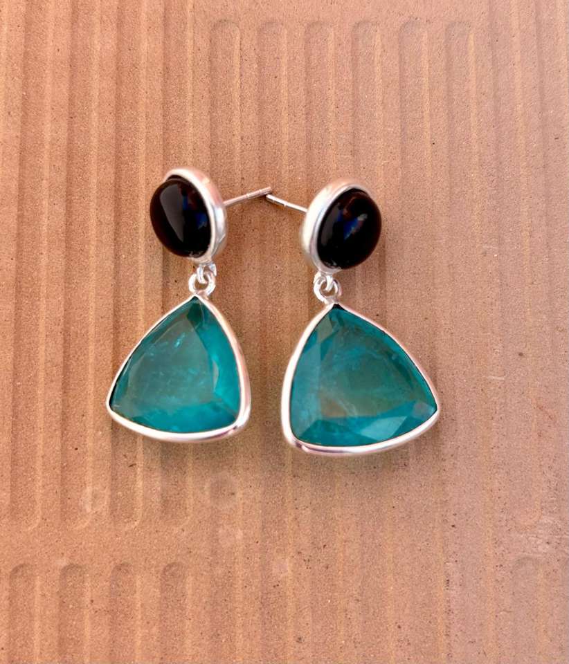 925 Sterling Silver Paraiba Tourmaline With Black Obsidian Earring , Beautiful Women Earring .