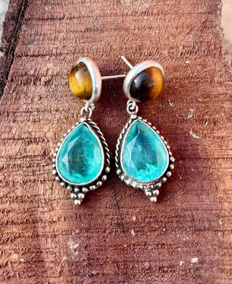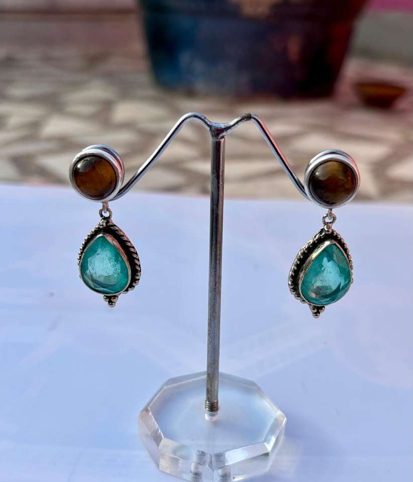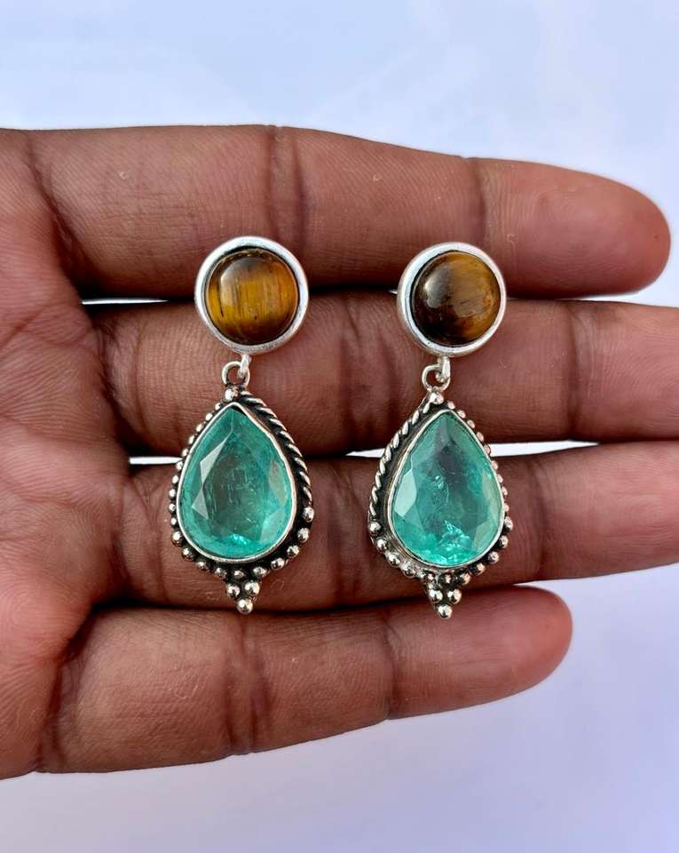 925 Sterling Silver Paraiba Tourmaline With Tiger Eye Handmade Ring , Beautiful Women Ring .