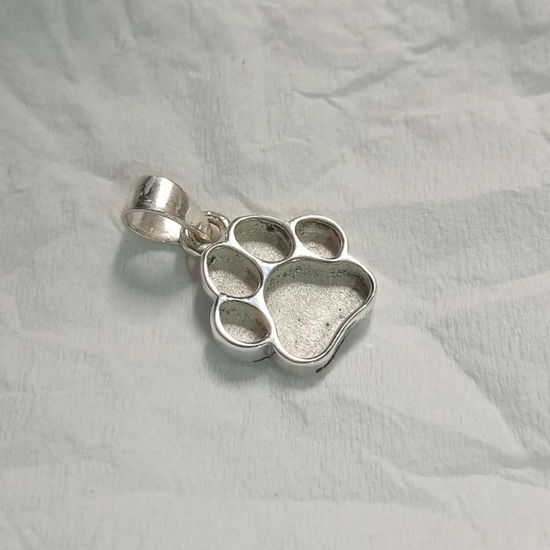 925 Sterling Silver Paw Print Memorial Pendant 17mm Resin Blank Keepsake Breastmilk Ash Urn Pet Jewelry Setting for DIY Making