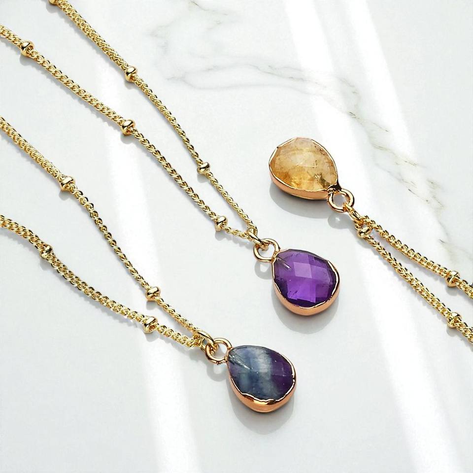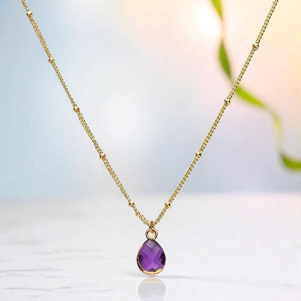 925 Sterling Silver Pear Amethyst Faceted Gemstone Electroplated Charm Pendant Necklace Jewelry Bulk Wholesale