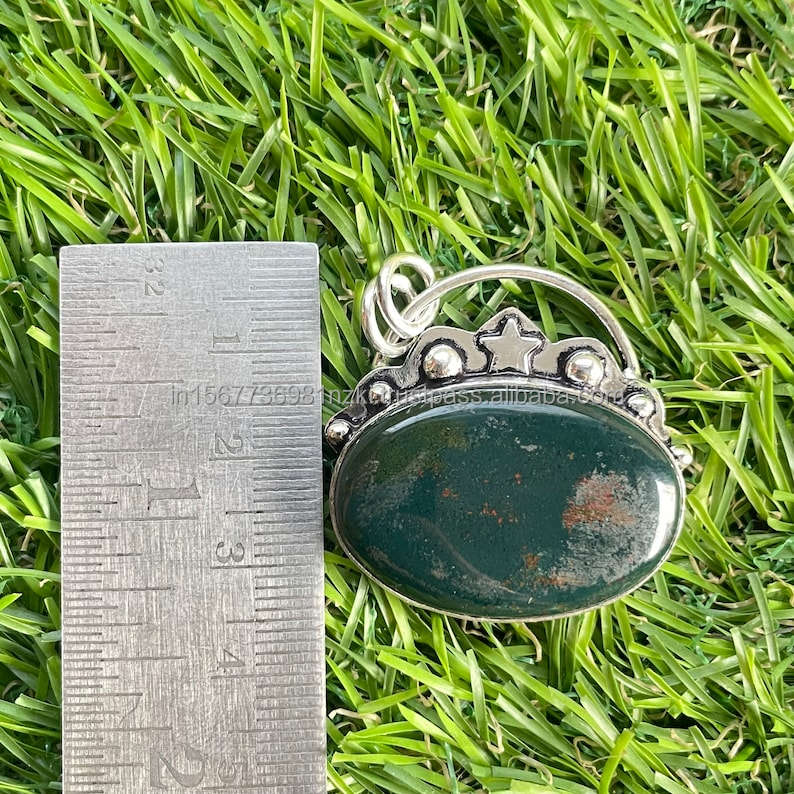 925 Sterling Silver Pendant, Bloodstone Gemstone Pendant, Handmade Silver Gemstone Jewelry, Bloodstone Pendant for Her
