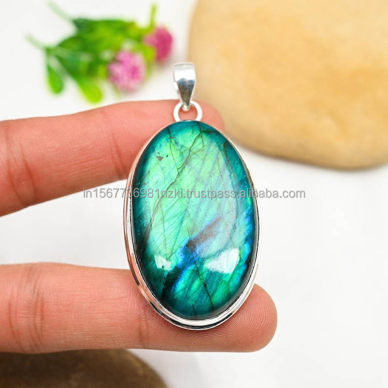 925 Sterling Silver Pendant Jewelry Labradorite Birthstone Handmade Chakra Alignment Pendant for Necklaces Women Christmas Gift