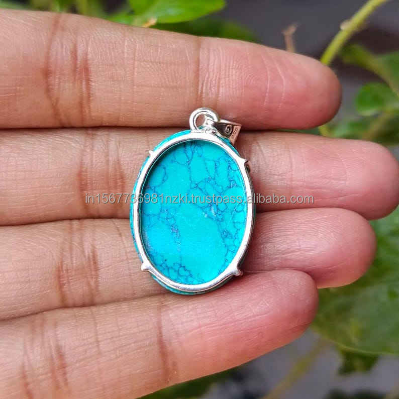 925 Sterling Silver Pendant Jewelry Turquoise Birthstone Handmade Silver Healing Necklace Blue Color Pendant for Necklaces Women
