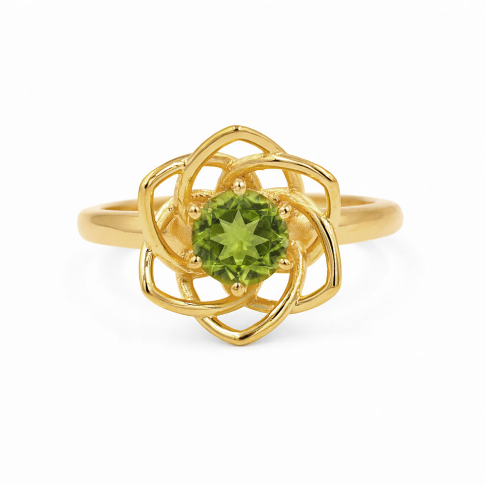 925 Sterling Silver Peridot Orchid Ring Green Cymbidium Inspired Floral Designer Jewelry