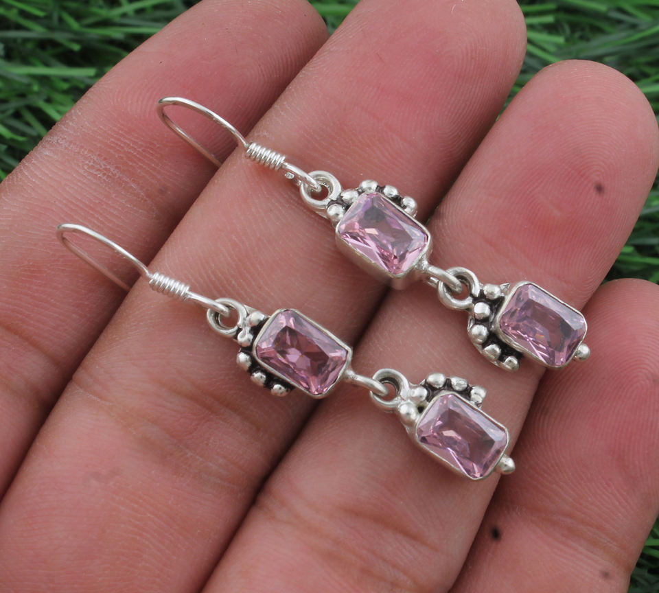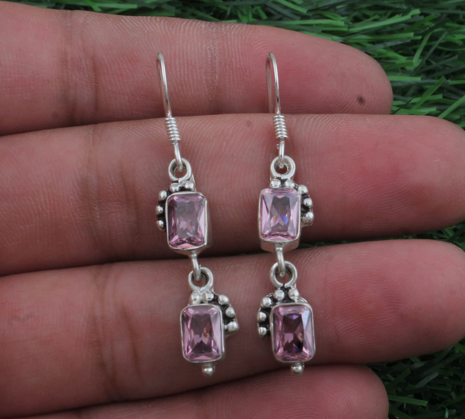 925 Sterling Silver Pink CZ Drop Teardrop Earrings Women Luxury Wedding Bridal Party Jewelry Gift
