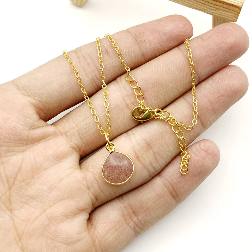 925 Sterling Silver Pink Strawberry Heart Necklace Handmade 10mm with Gold Plating Smooth Gemstone Jewelry Gift for Weddings