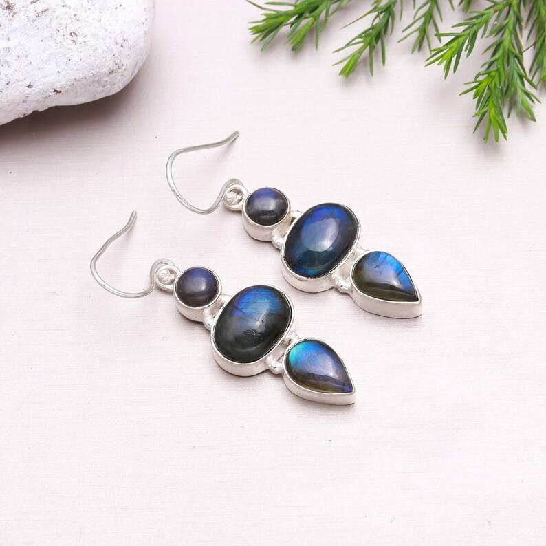 Product Name:Natural Labradorite Gemstone Silver Earrings