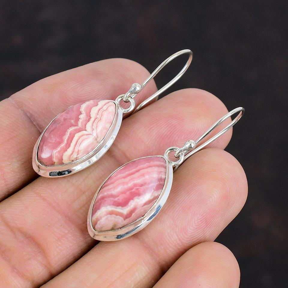 Product Name:Natural Rhodochrosite Gemstone Silver Earrings