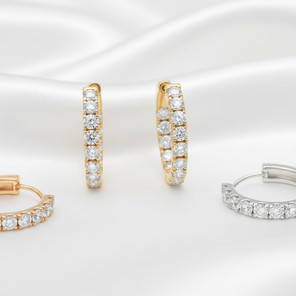 925 Sterling Silver Plated Luxury Huggie Hoop Earrings Inside Out Round Moissanite Chunky Design Unisex Engagement Parties Gift