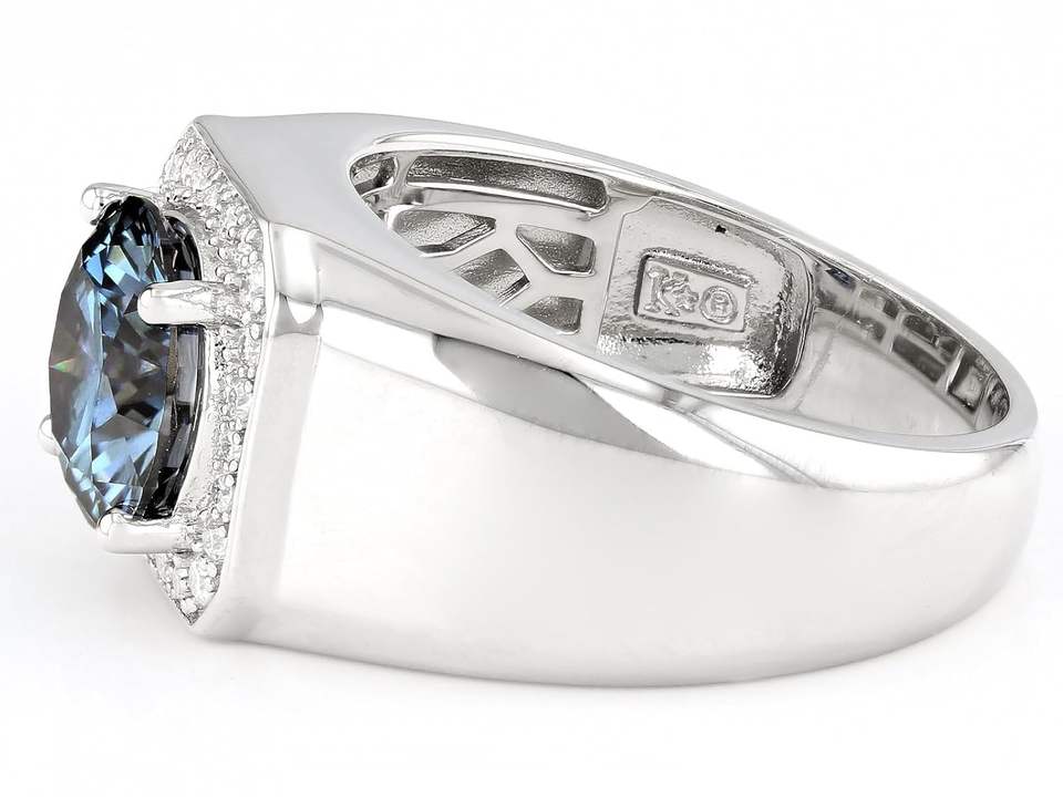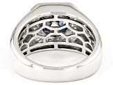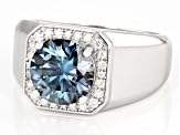 925 Sterling Silver Platinum Plated Blue Colorless Moissanite Mens Ring Unisex Wedding Jewelry Diamond Inlay Setting for Parties