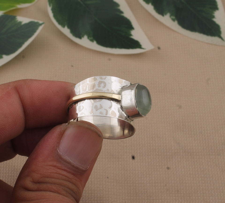 925 Sterling Silver Prehnite Gemstone Ring Handmade Vintage Fidget Spinner Worry Meditation Ring for Wedding Occasions