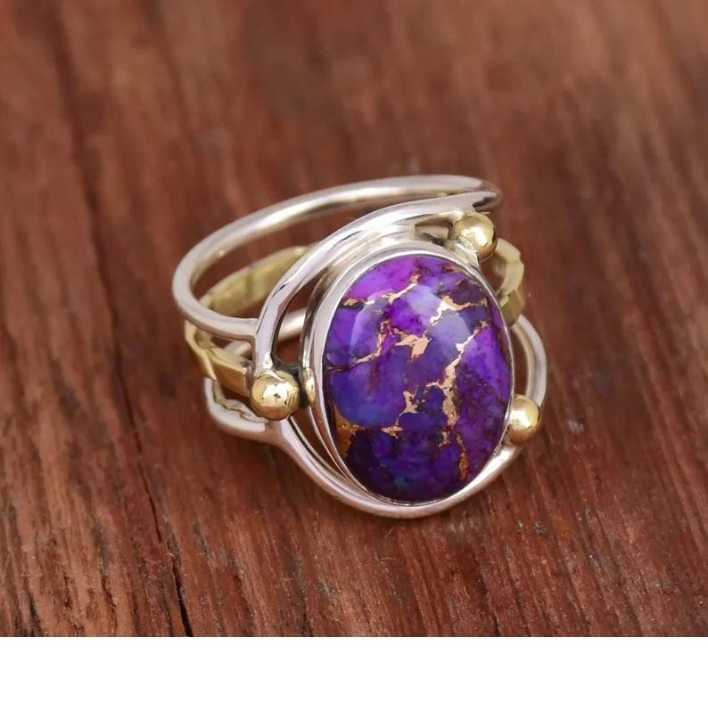925 Sterling Silver Purple Copper Turquoise Ring Multi Band Beaded Two Tone Statement Boho Ring Gift for Her